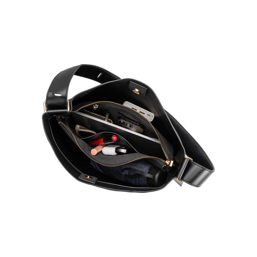 Crafted from buttery-soft faux suede, Stormie offers spacious elegance with room for everything you need. Its single, adjustable strap adapts to your day—whether you're running errands, heading to brunch, or dashing between meetings. * Recycled Vegan Suede Leather * 15"W x 11.5"H x 5"D * Handle Drop: 15"-30" * Zipper & Magnetic Snap Closure * Gold-Tone Hardware * Interior Zip & Slip Pocket * Center Zip Divider * OEKO-TEX Certified Lining * Fits up to a standard-size tablet * Product No. BD1046FS-K