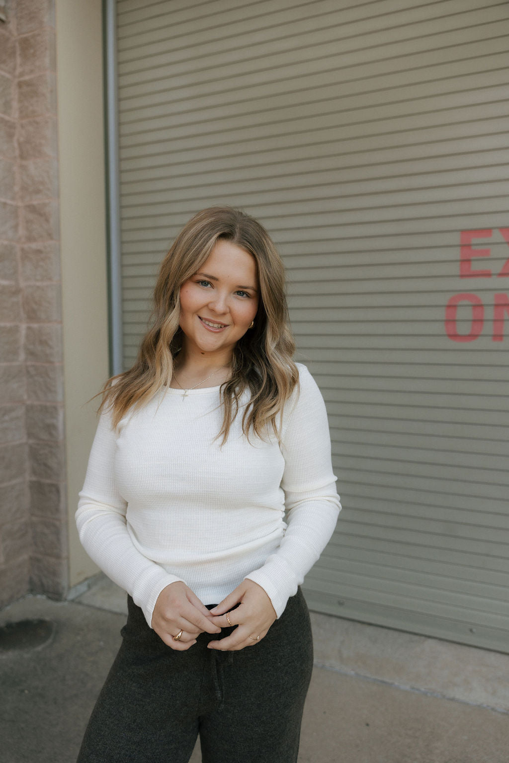 This cream side ruched top offers a soft, comfortable fit with long sleeves and a flattering cropped length. The round neckline adds a casual touch, making it perfect for layering during the crisp fall season. Its gentle ruching detail on the side brings subtle style to everyday wear.