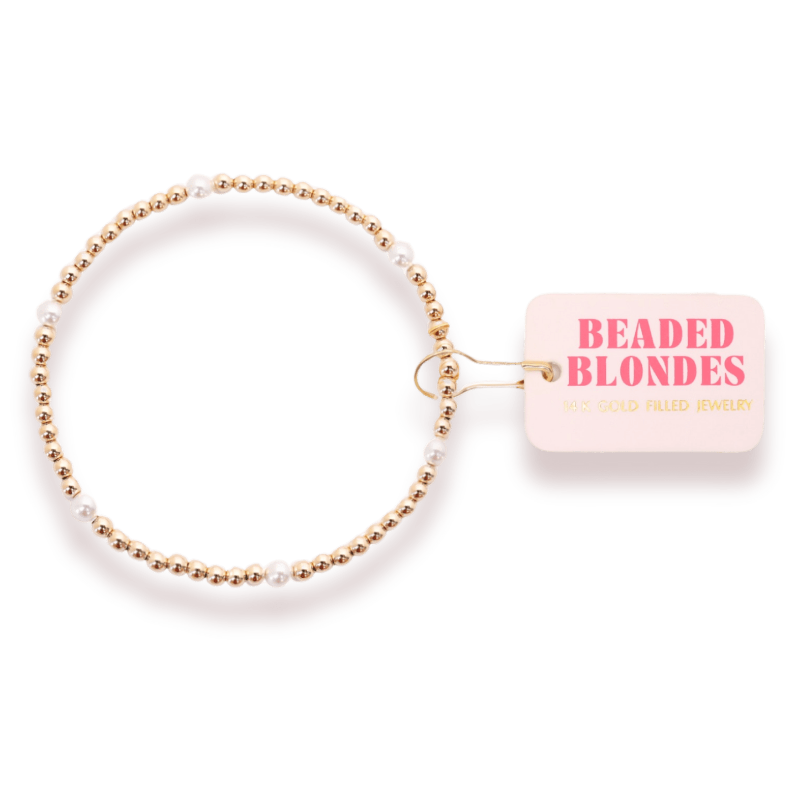 Beaded Blondes gold stackable beaded bracelets with freshwater pearls.