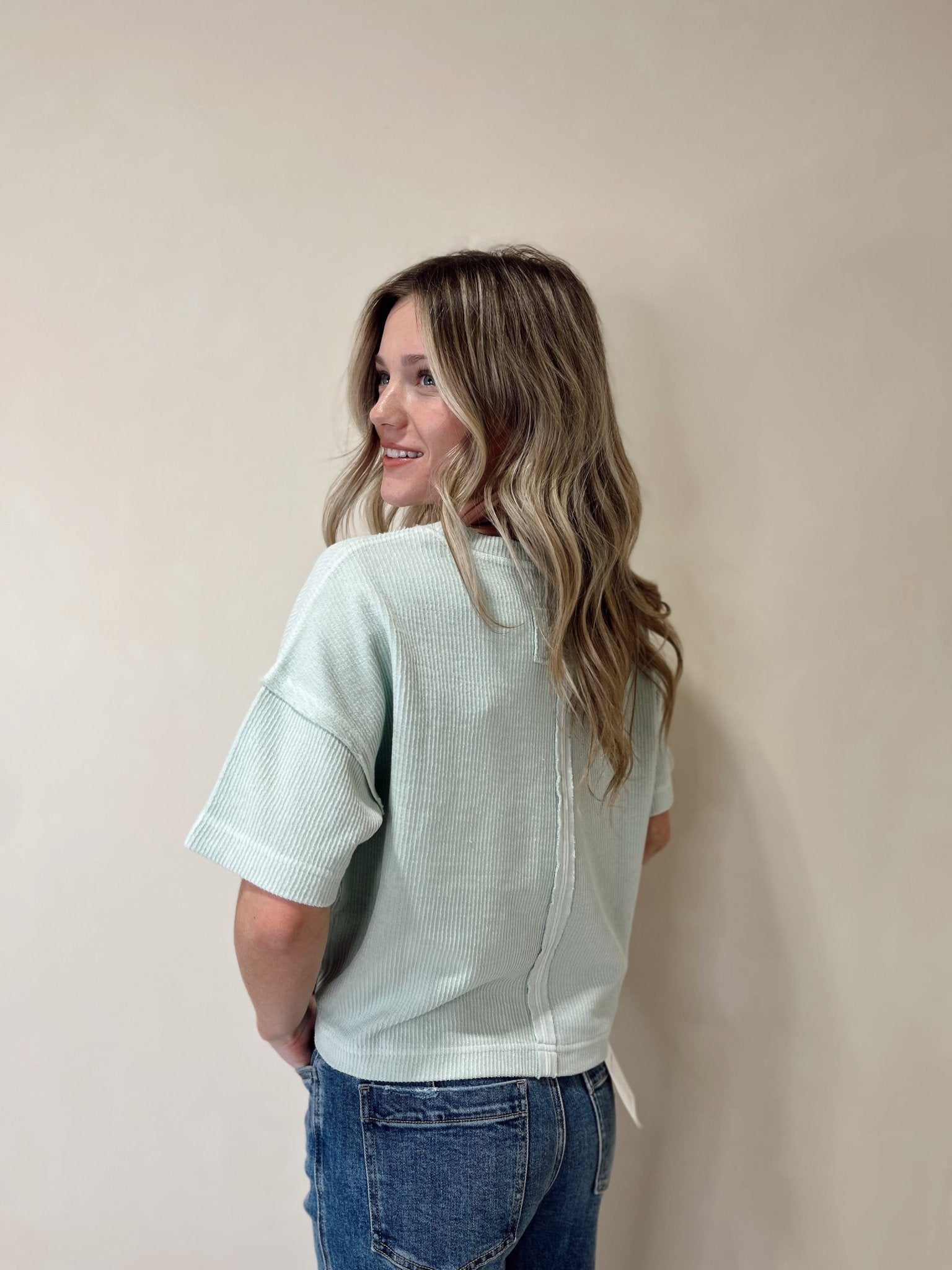 Description: Our Jules Ribbed Tee in Mint by Blu Pepper is the perfect everyday basic for spring and summer, featuring a soft ribbed texture and fresh mint color that feels light and easy to wear. Effortlessly versatile, it pairs beautifully with jeans, shorts, or breezy linen pants for a simple, polished outfit you’ll reach for again and again.