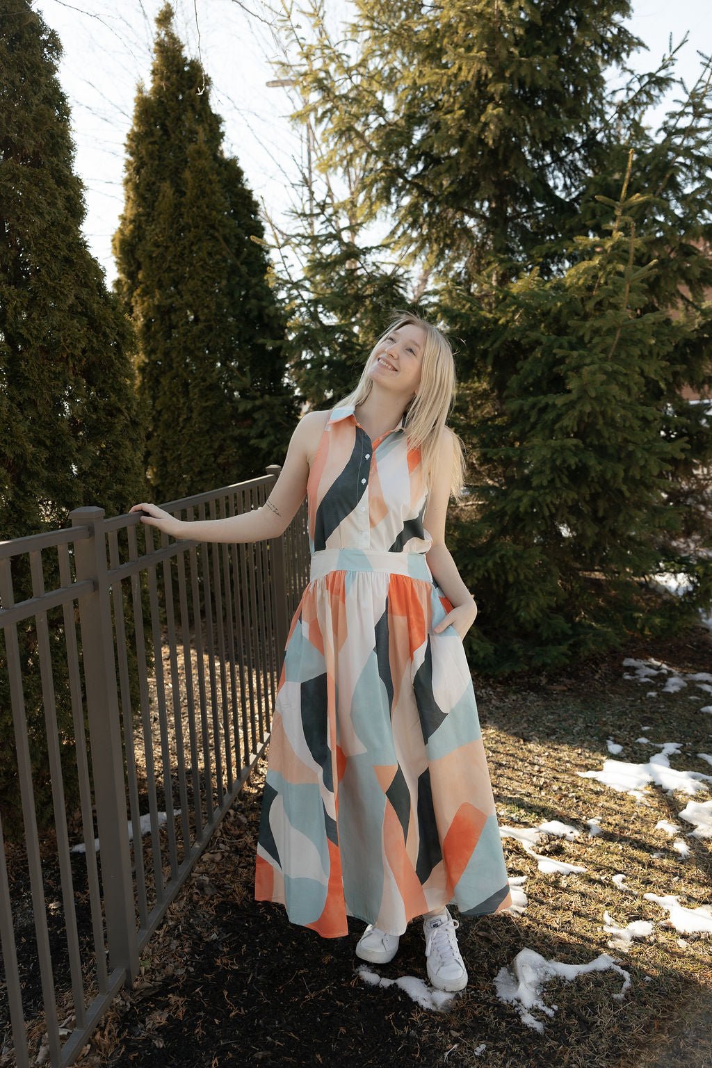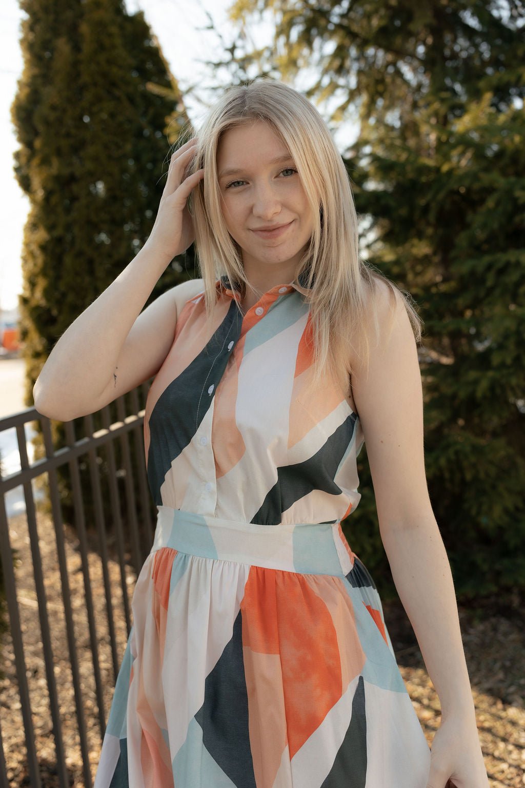 This dress runs true to size, model wearing size small.