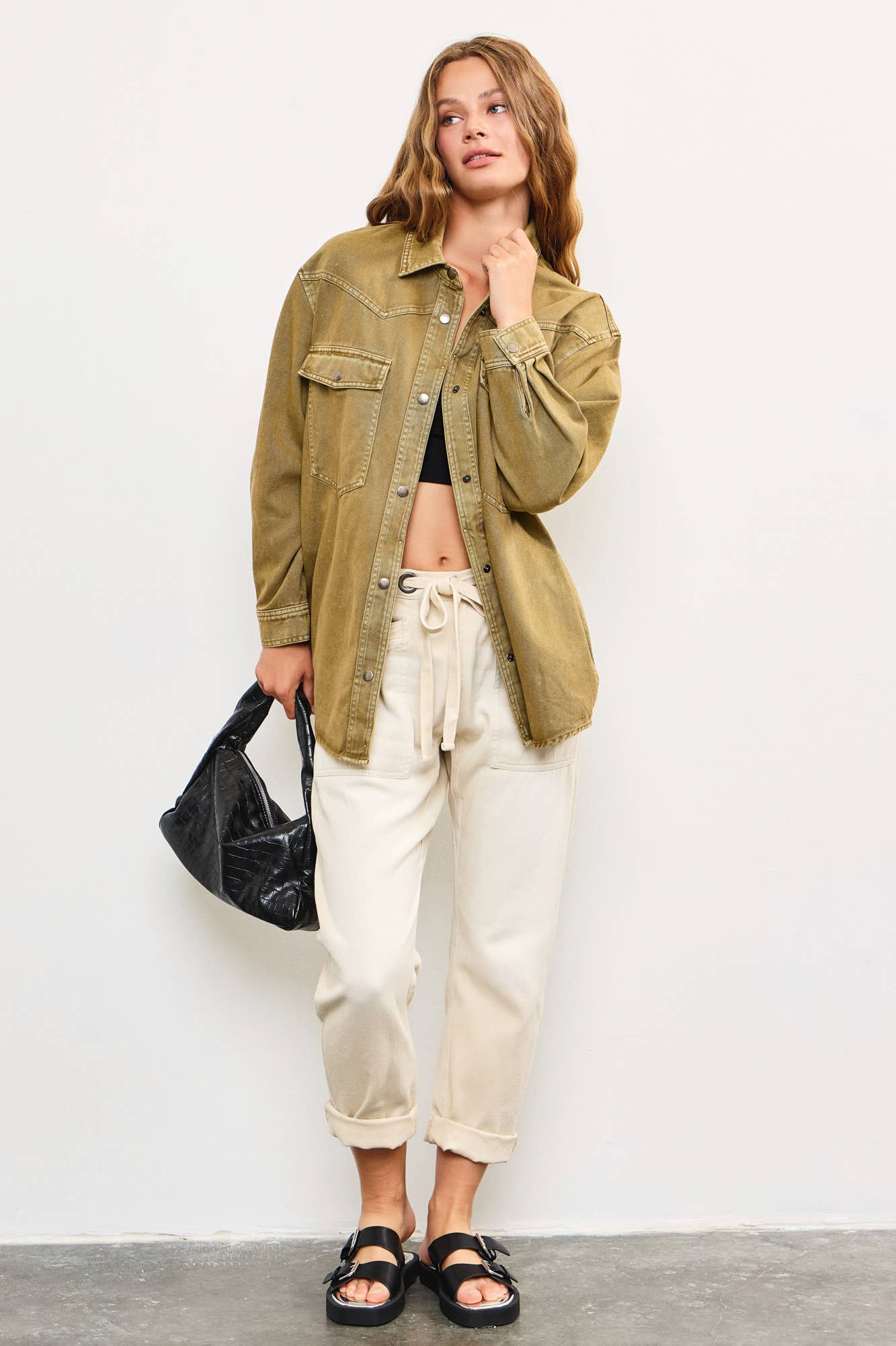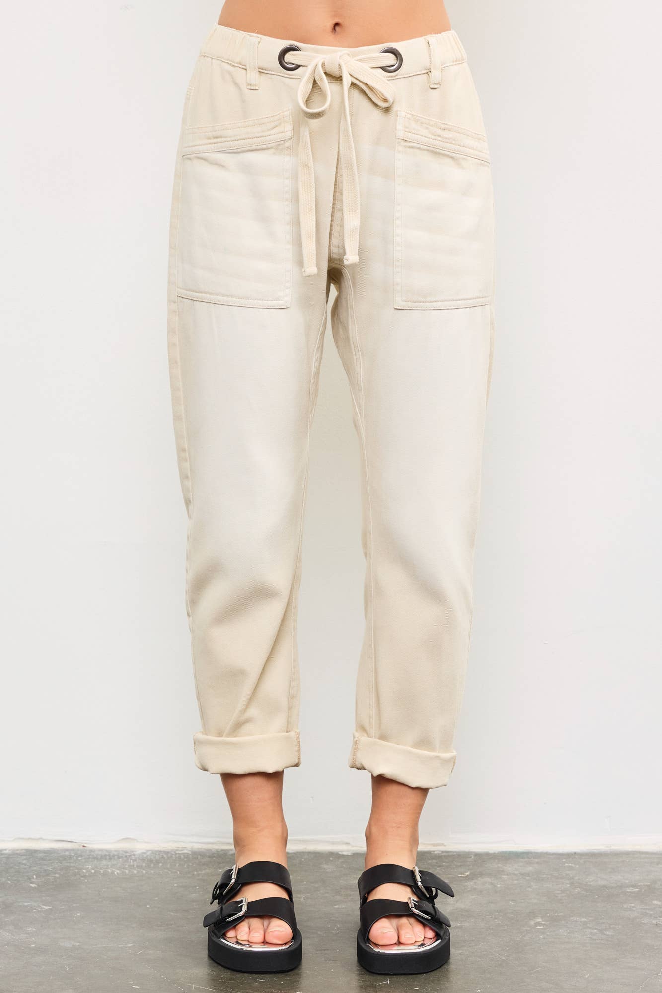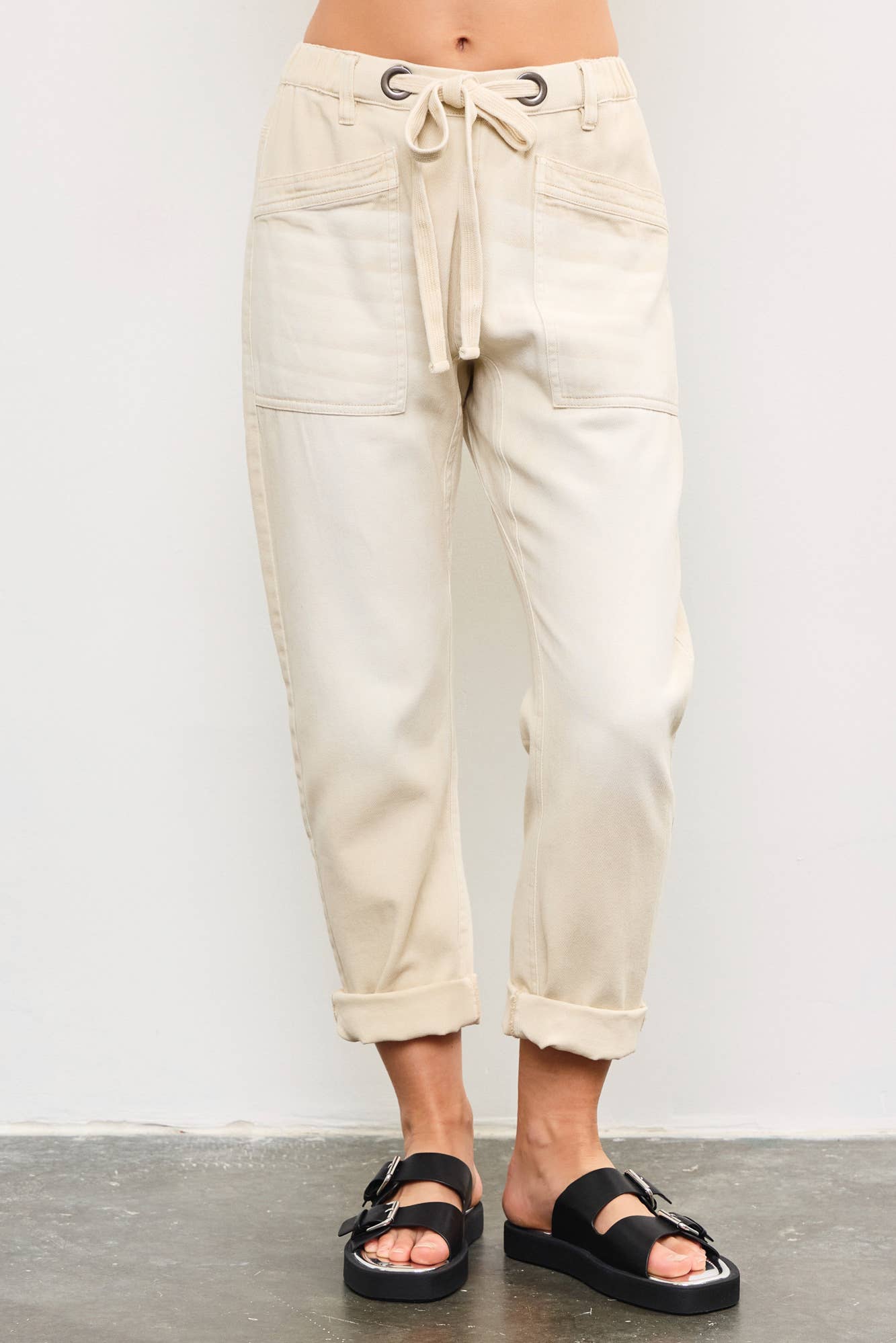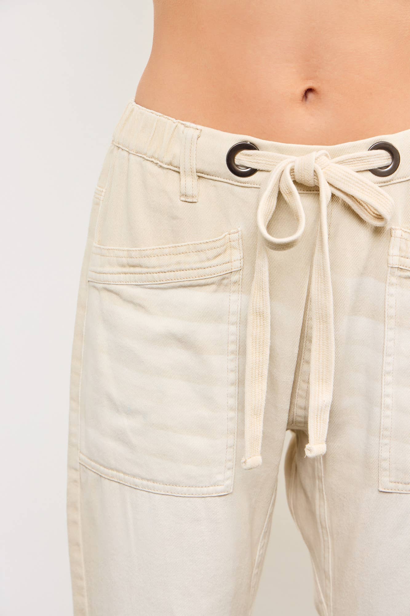 Front Tie Denim Pants, Ecru *final sale