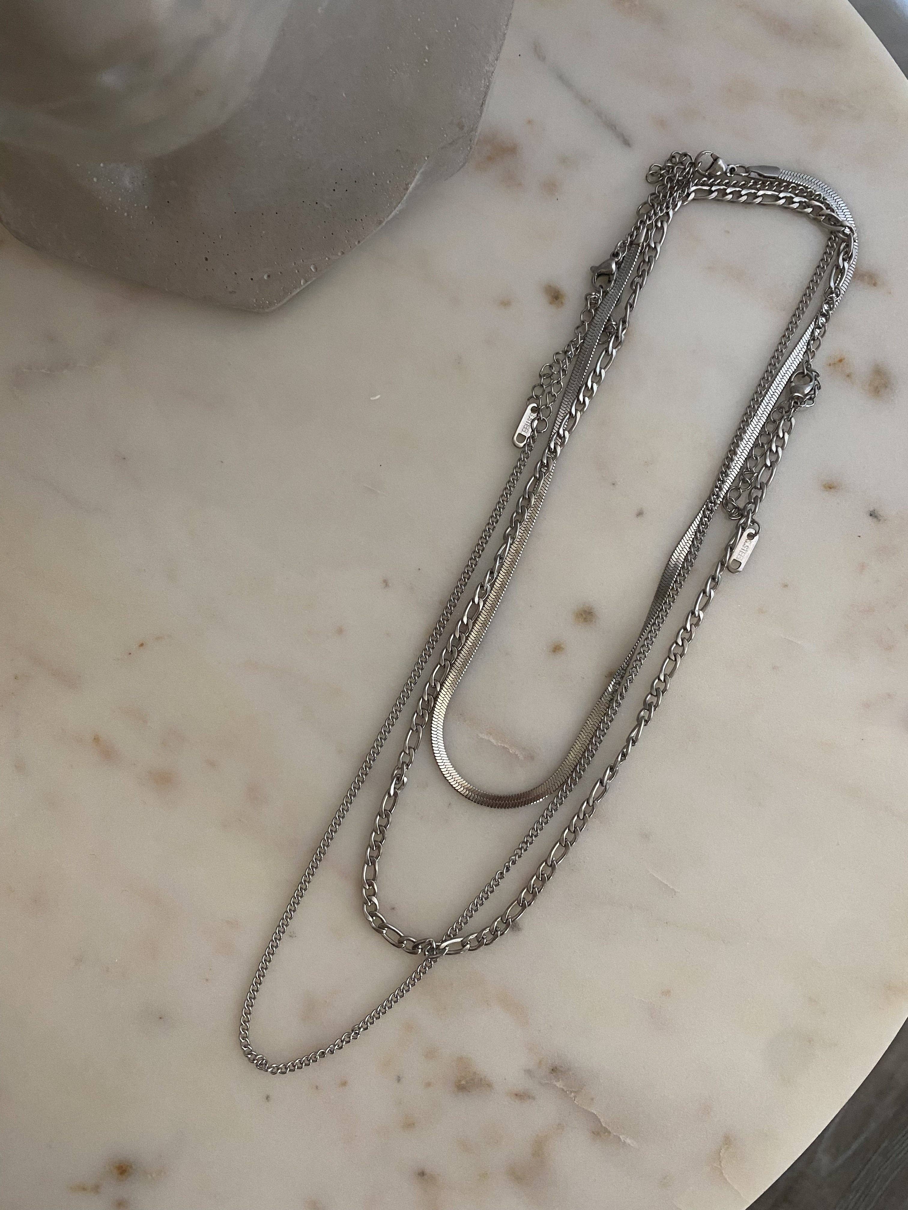 Set includes 3 chain necklaces. NOW AVAILABLE in a non-tarnishing Stainless steel or 14k gold plating.