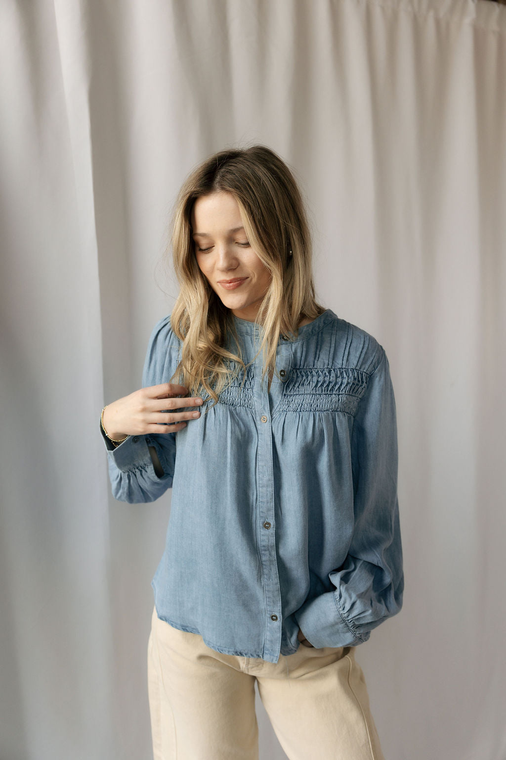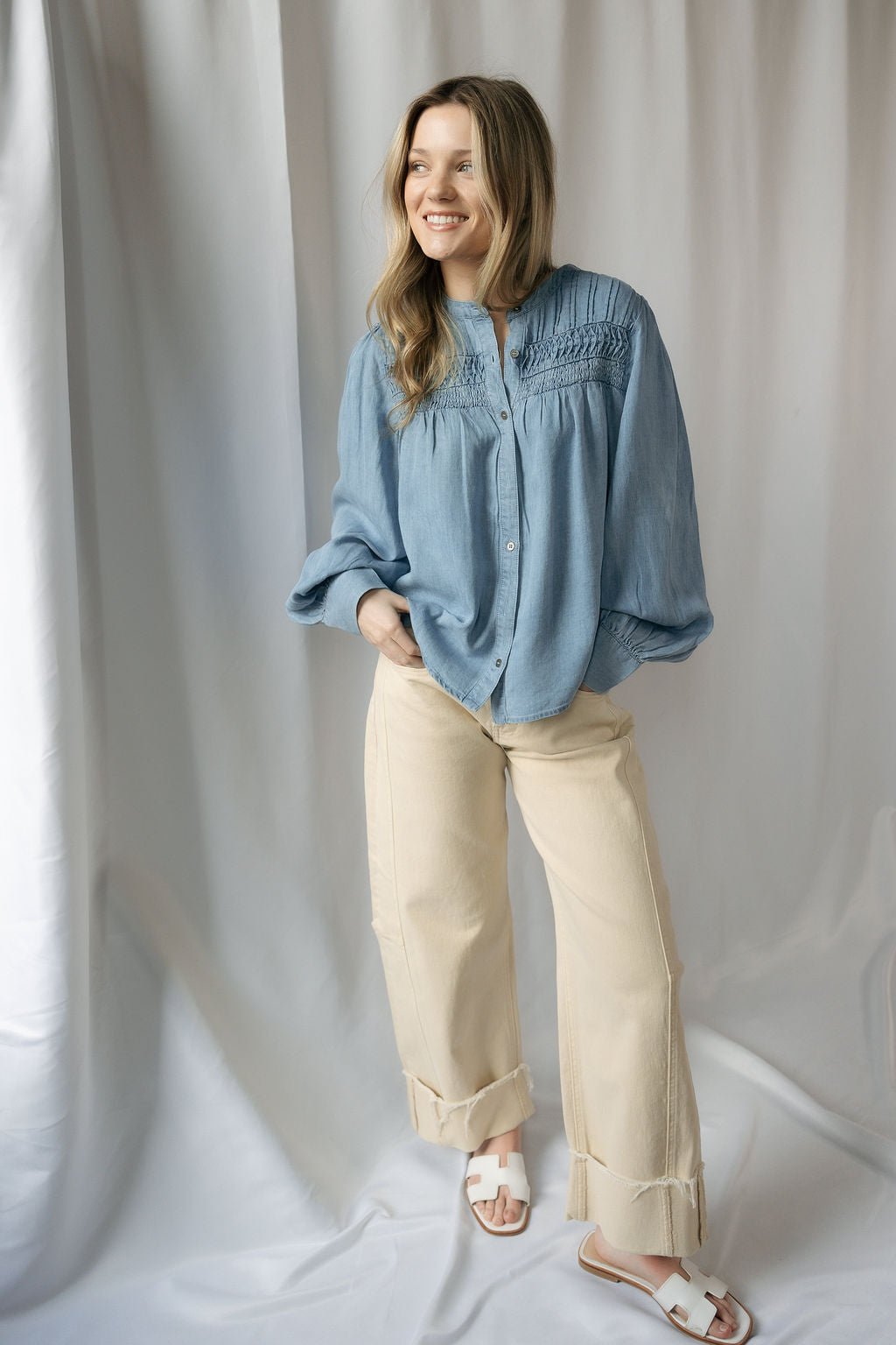 Description: Our Briar Denim Top is a flowy and effortlessly stylish piece that’s perfect for spring and summer, featuring fun detailing that adds character and charm to this denim-inspired staple. Easy to dress up, it pairs beautifully with linen pants or colorful denim jeans for a fun, elevated outfit that still feels relaxed and wearable.