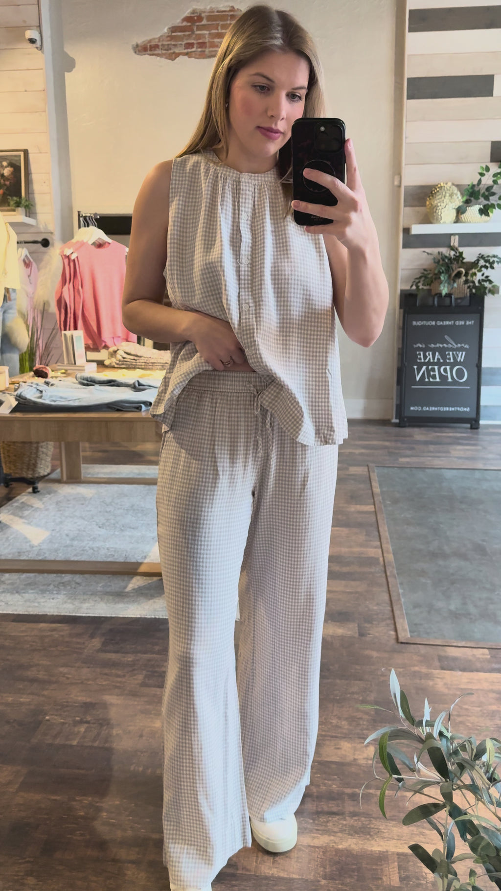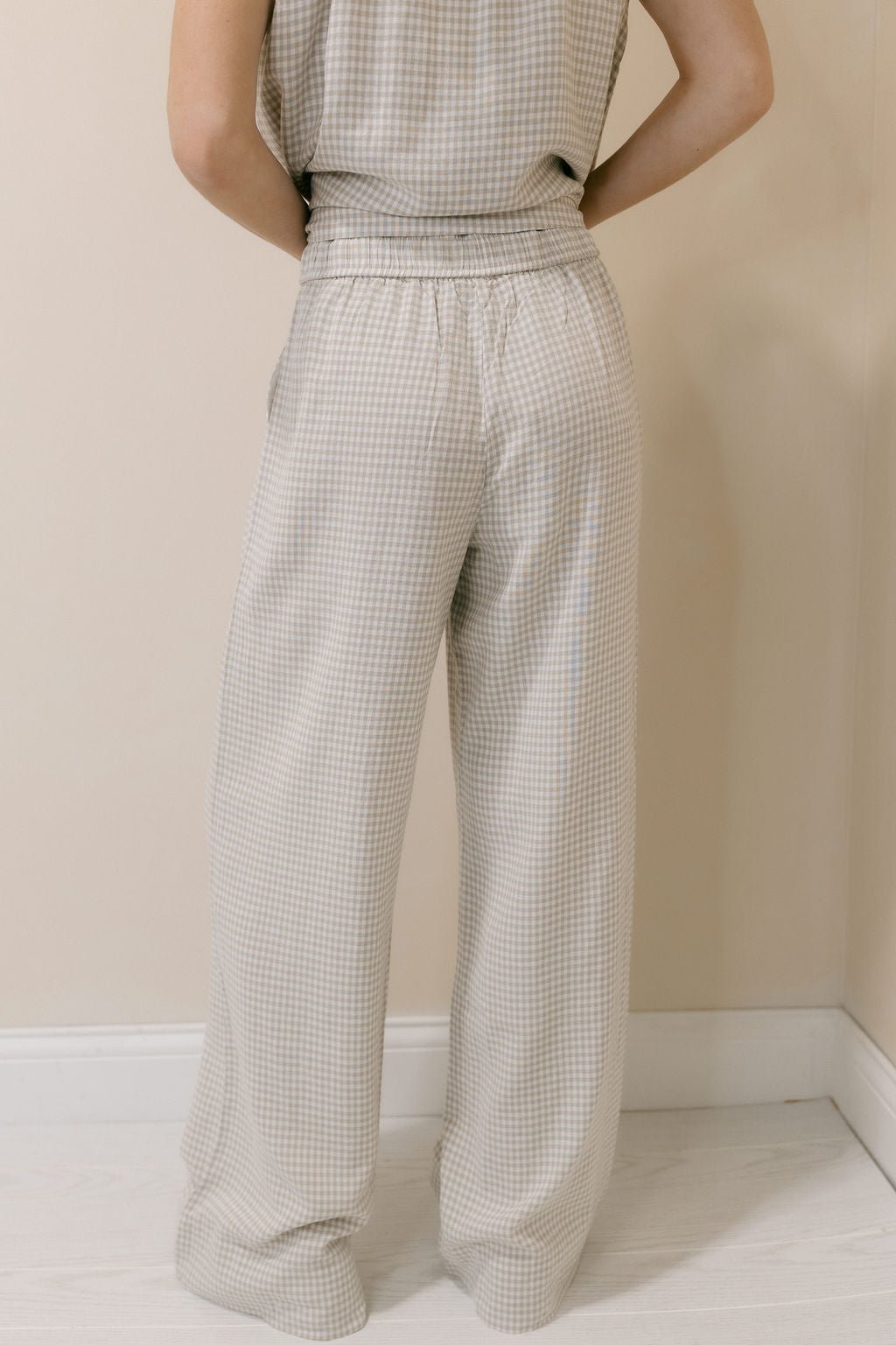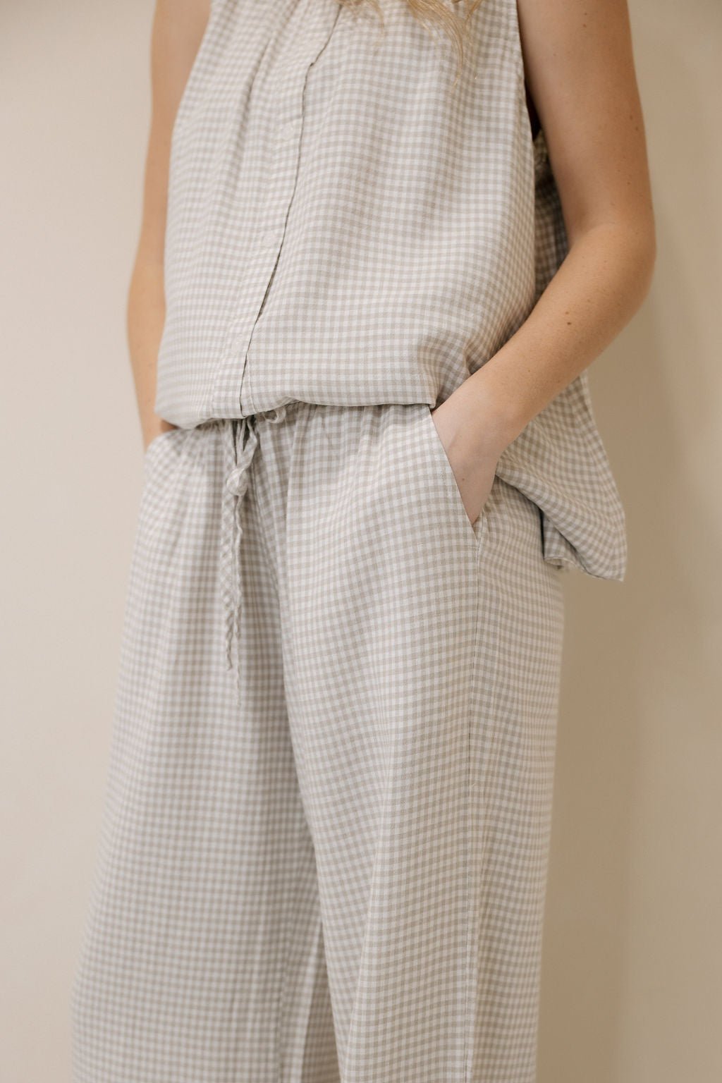 Description: Our Caelis Pants in Charcoal Gingham by Thread & Supply are the perfect lightweight staple for spring and summer, offering a comfortable, easy-to-wear fit that’s ideal for everyday style. The classic gingham print adds a timeless touch, making them simple to dress up or down with a quick change of accessories or jewelry for anything from casual days out to more polished plans.