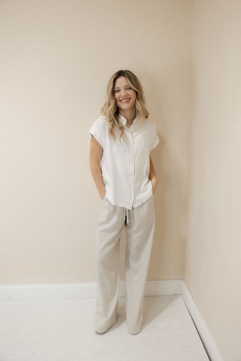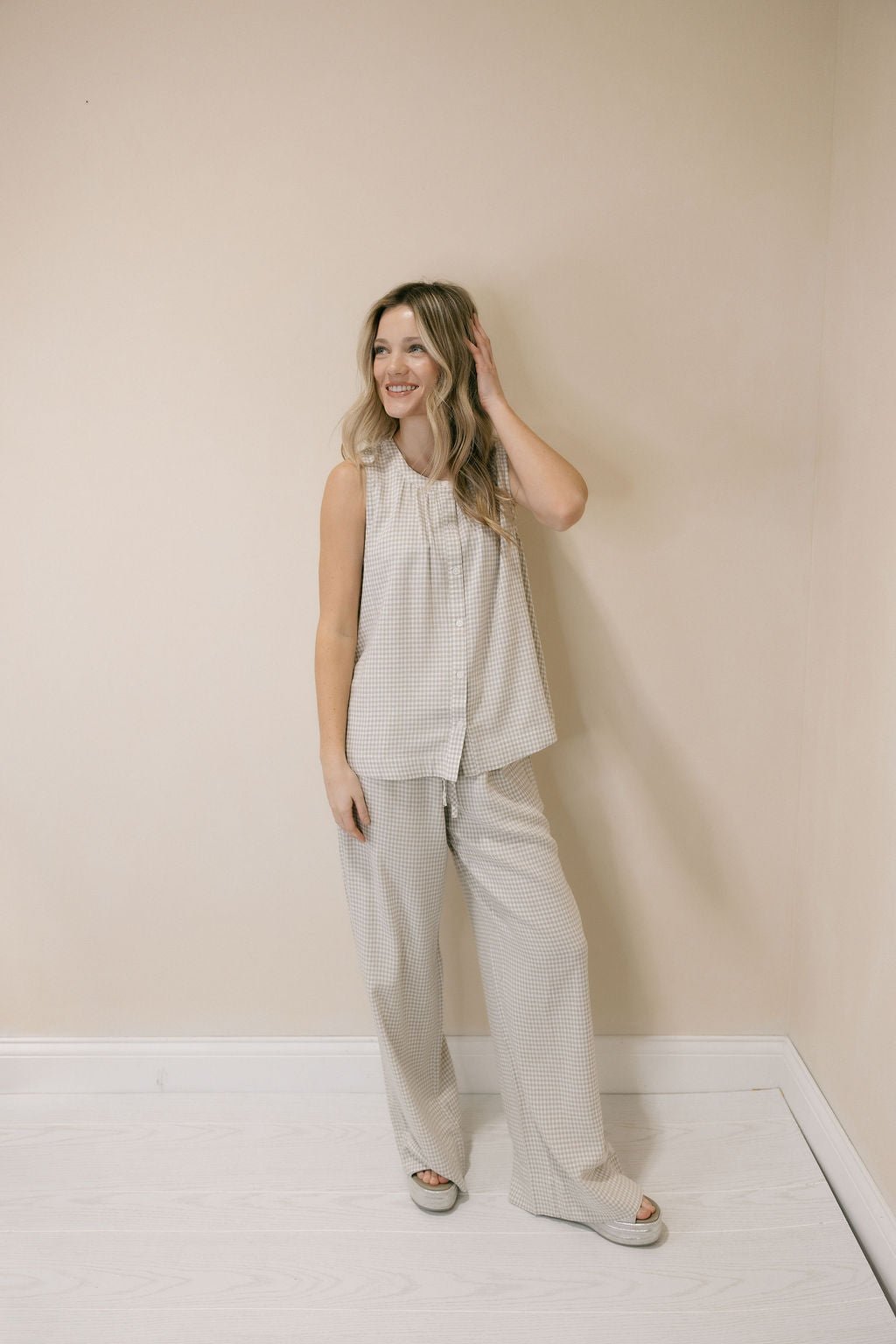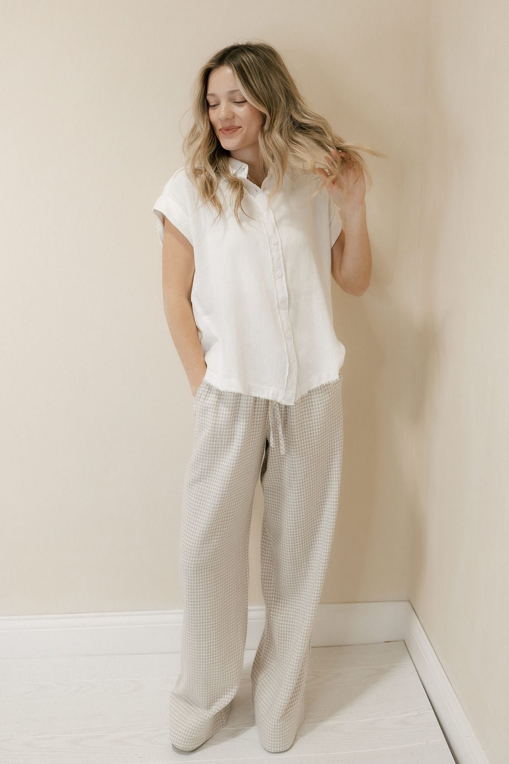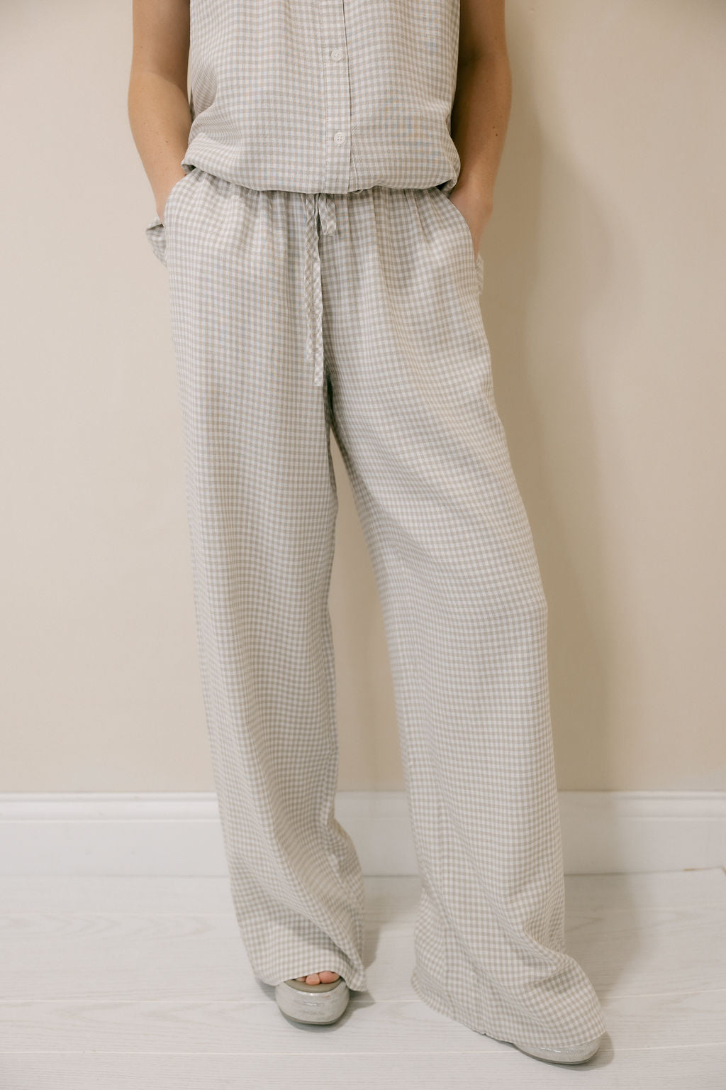 Description: Our Caelis Pants in Charcoal Gingham by Thread & Supply are the perfect lightweight staple for spring and summer, offering a comfortable, easy-to-wear fit that’s ideal for everyday style. The classic gingham print adds a timeless touch, making them simple to dress up or down with a quick change of accessories or jewelry for anything from casual days out to more polished plans.