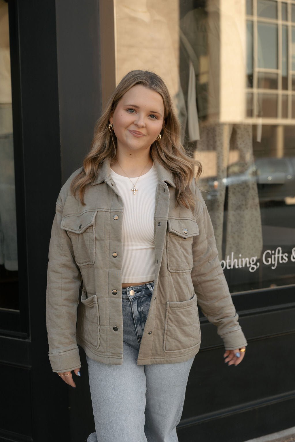 Meet your new go-to layer for every season: the Arista Jacket by Thread & Supply in a soft sage hue. This effortlessly chic jacket blends utilitarian ease with refined style — making it perfect for everyday wear, weekend adventures, and transitional weather.