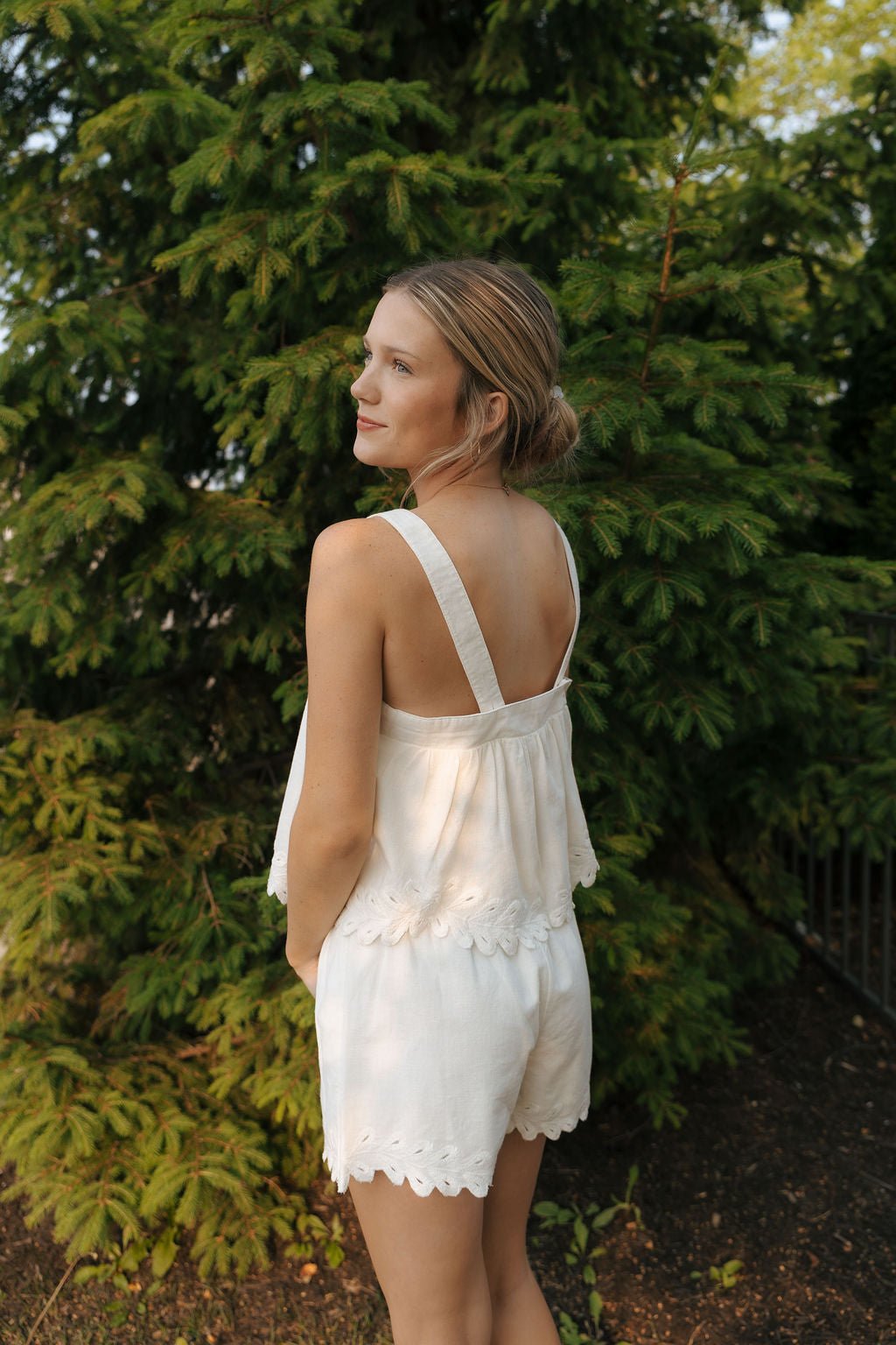 The Annecy Tank in crisp white features a flattering square neckline and sleeveless design, perfect for warm days. Adjustable straps ensure a personalized fit, while its cropped length adds a modern edge to your spring and summer wardrobe. Effortlessly stylish and versatile, this tank pairs beautifully with your favorite high-waisted pieces for a fresh, unique look.
